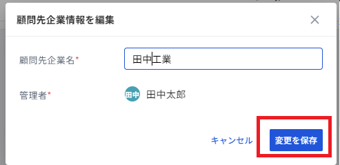顧問先企業名を修正したら「変更を保存」をクリックしてください。