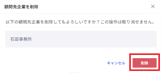 (3)顧問先企業を削除する(アドミン権限・マネージャー権限ユーザーのみ操作可能)