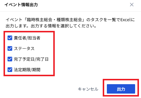 (2)出力したい情報を選択して「出力」をクリック