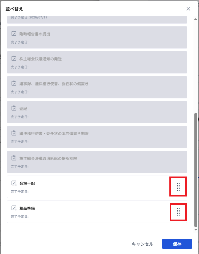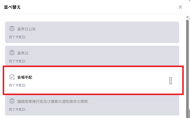 (2)タスク名右側のドラッグハンドルをドラッグして並び順を変更できます。